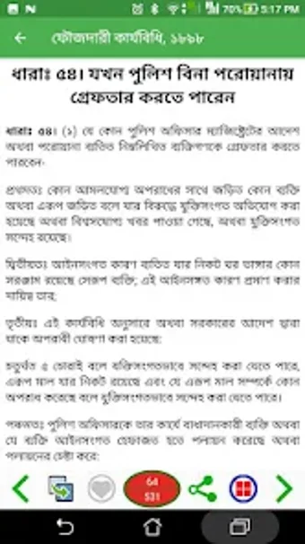 Användare kan navigera genom olika lagar och förordningar vilket gör det lättare att hitta specifik information. Appen är utformad för att vara användarvänlig och tillhandahåller relevant juridisk information som kan vara avgörande för medborgare som vill förstå sina rättigheter och skyldigheter. Med denna app kan användare få en bättre insikt i det rättsliga systemet i Bangladesh.